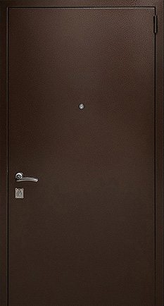 Толщина металла от 2 мм: дверь невозможно выломать или отжать за счет единой конструкции полотна и коробки, а также использования скрытых петель и противовзломных устройств.